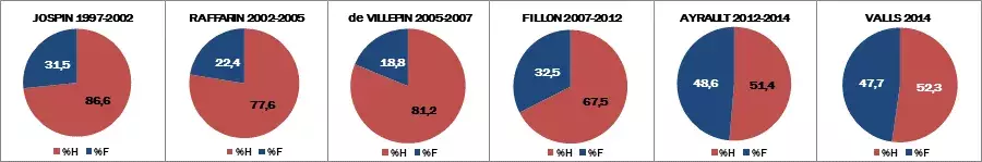 Enfin, le HCEfh appelle les nouveaux et nouvelles ministres à composer leur cabinet dans le respect du principe de parité. En effet, ces lieux de pouvoir sont encore caractérisés par une composition encore très largement masculine : les membres des cabinets ministériels - hors fonctions support (secrétariat, logistique, etc.) - étaient composés au 4 mars 2014 de 35% de femmes seulement. Et plus on monte dans la hiérarchie, moins les femmes sont nombreuses. Si on a pu relever un doublement de la part des femmes directrices de cabinet à l’occasion du Gouvernement Valls 1 en avril dernier (22% des cabinets ministériels étaient dirigés par une femme contre 13% sous le Gouvernement Ayrault 2), de grands progrès restent à réaliser puisque seul 1 directeur de cabinet ministériel sur 5 est une femme..