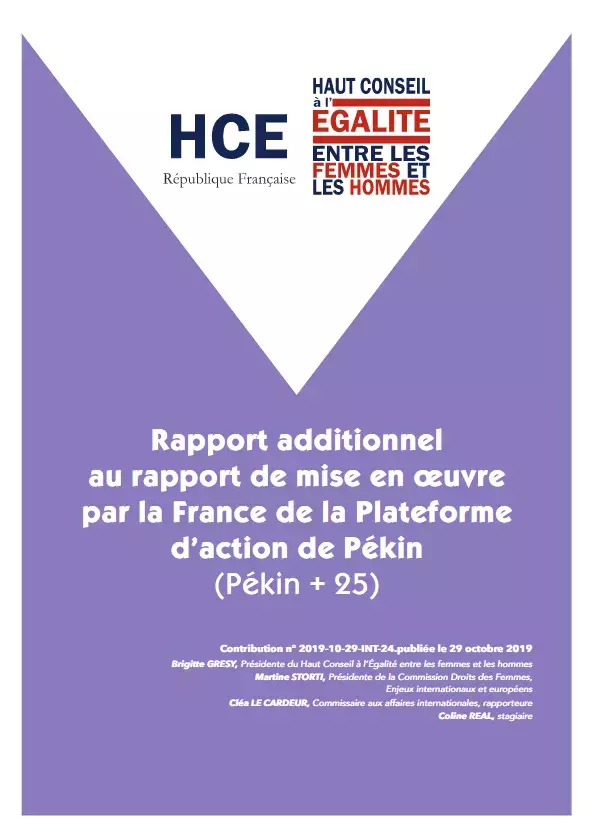 Le Haut Conseil à l’Egalité entre les femmes et les hommes rend publique sa contribution en vue du processus de revue régionale et mondiale des engagements pris par les Etats dans le cadre de la conférence mondiale de Pékin sur les femmes (Pékin + 25), afin de faire entendre une voix additionnelle, incluant celle de la société civile, en complément du rapport transmis par l’administration française aux services de l’ONU.