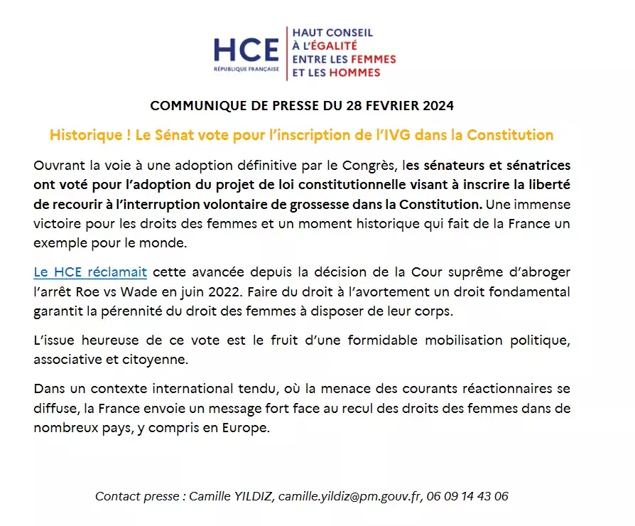 Historique ! Le Sénat vote pour l’inscription de l’IVG dans la Constitution