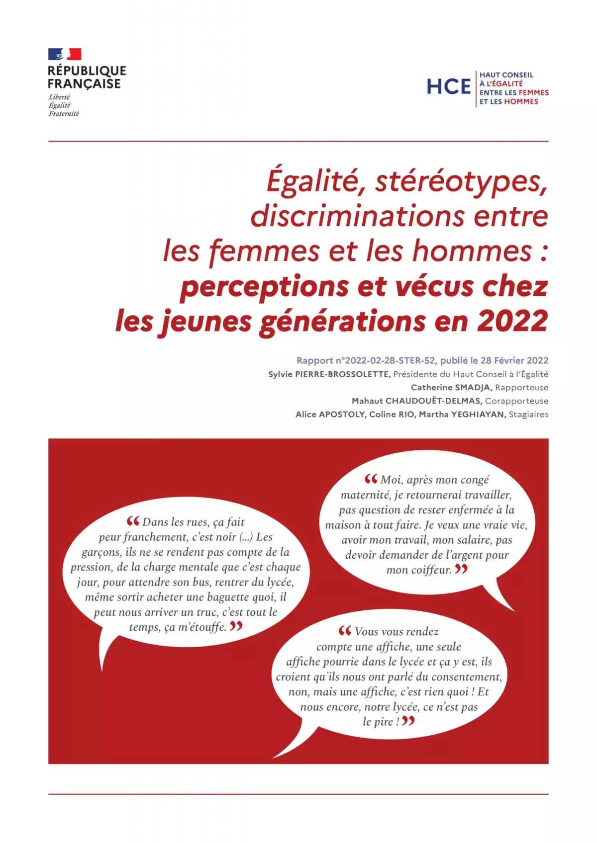 Rapport - Egalité, stéréotypes, discriminations entre les femmes et les hommes : perceptions et vécus chez les jeunes générations en 2022