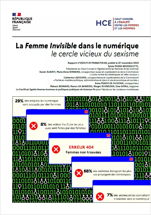 Le HCE publie un rapport inédit sur les relations entre femmes et numérique et formule des propositions pour mettre un terme aux inégalités de genre et rompre le cercle vicieux du sexisme. Il s'agit d'analyser conjointement la représentation des femmes dans la production numérique et leur présence dans les filières académiques et professionnelles, travail réalisé en transversalité par les commissions « Lutte contre les stéréotypes et rôles sociaux » et « Parité en matière politique, administrative et dans la vie économique et sociale » du HCE.