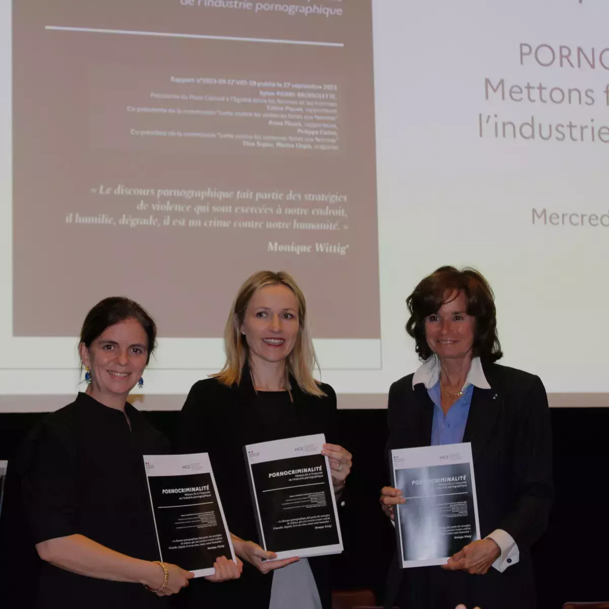 Comme le laissent espérer les importantes retombées médiatiques faisant suite à la publication du rapport, elle souhaite que l’opinion publique se saisisse pleinement du sujet des violences sexistes et sexuelles dans l’industrie pornographique. Elle appelle le gouvernement et les parlementaires à s’appuyer sur les recommandations du HCE à l’occasion des débats sur le projet de loi visant à sécuriser et réguler l’espace numérique et, plus largement, pour mettre fin à l’impunité de l’industrie pornographique.