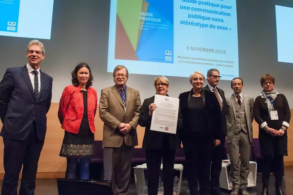 Plus de 200 personnes étaient présentes jeudi 5 novembre 2015, au Ministère des Affaires sociales, de la Santé et des Droits des femmes, pour la publication du Guide pratique pour une communication publique sans stéréotype de sexe.