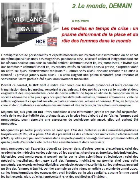 « Plan égalité » : des mesures qui vont dans le bon sens … à la condition d’une mise en œuvre rapide et de moyens adaptésLe HCE…