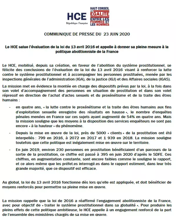 Le HCE salue l’évaluation de la loi du 13 avril 2016 et appelle à donner sa…Le HCE, mobilisé, depuis sa création, en faveur de l’abolition du système prostitutionnel, se félicite des conclusions de l… Publié le