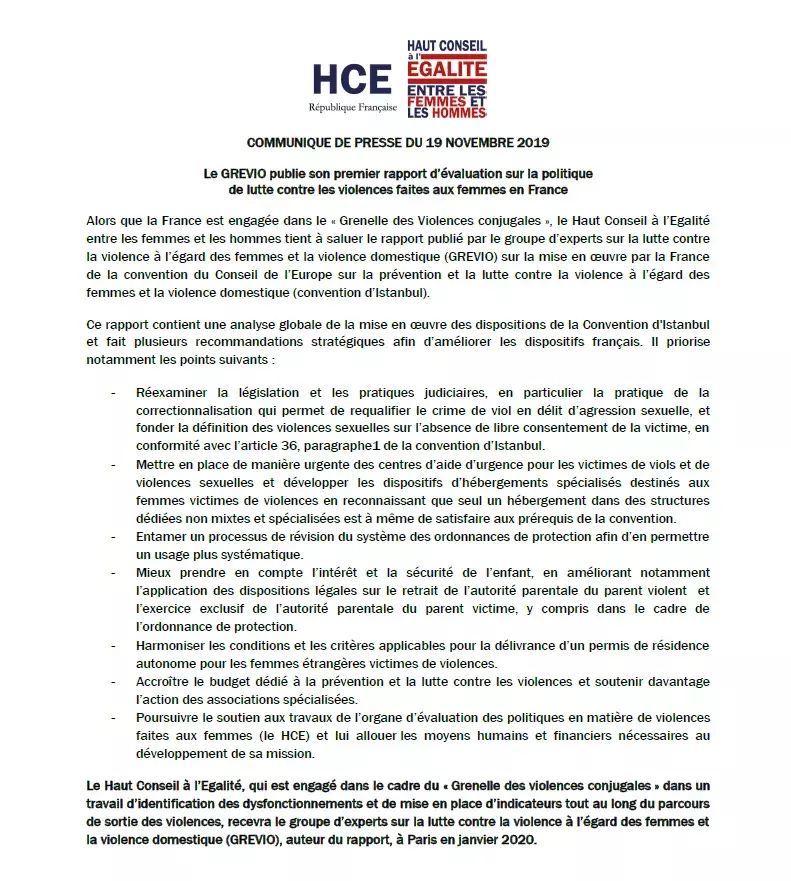 Le GREVIO publie son premier rapport d’évaluation sur la politique de lutte…COMMUNIQUE DE PRESSE DU 19 NOVEMBRE 2019Le GREVIO publie son premier rapport d’évaluation sur la politique de lutte contre les… Publié le
