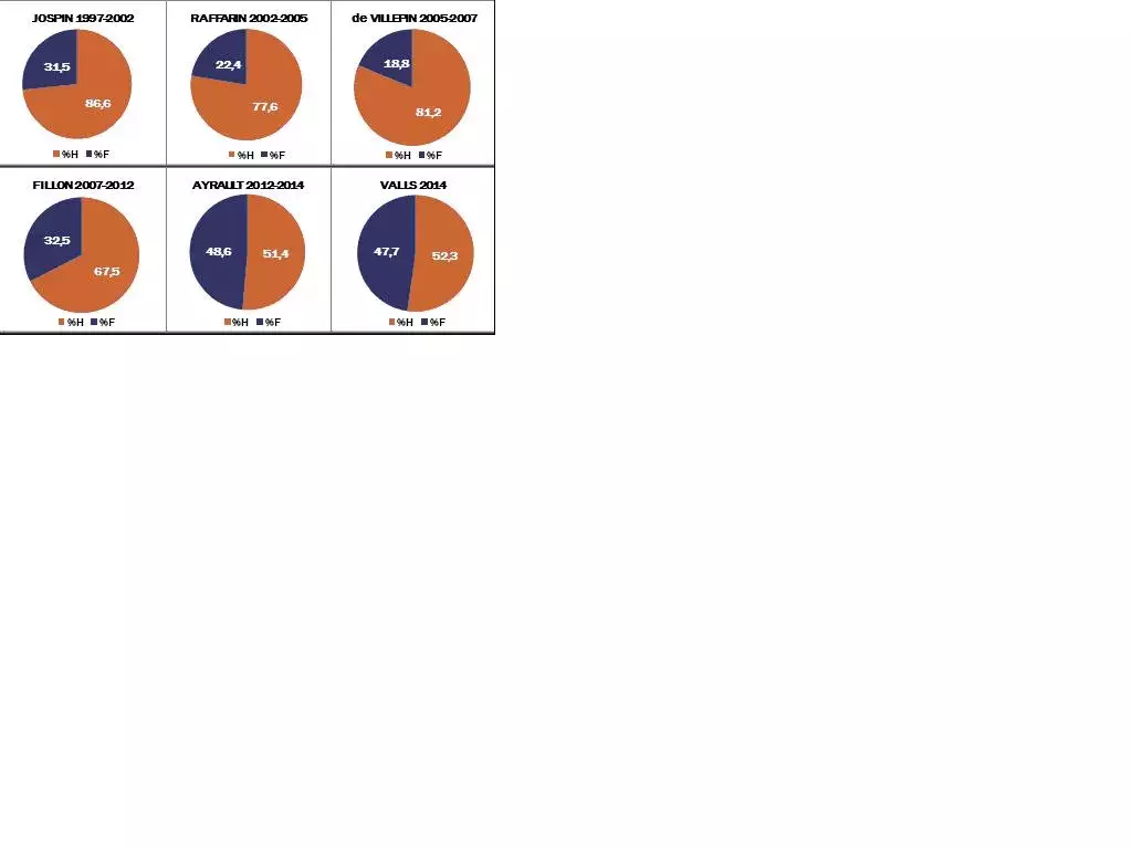 Enfin, le HCEfh appelle les nouveaux et nouvelles ministres à composer leur cabinet dans le respect du principe de parité. En effet, ces lieux de pouvoir sont encore caractérisés par une composition encore très largement masculine : les membres des cabinets ministériels - hors fonctions support (secrétariat, logistique, etc.) - étaient composés au 4 mars 2014 de 35% de femmes seulement. Et plus on monte dans la hiérarchie, moins les femmes sont nombreuses. Si on a pu relever un doublement de la part des femmes directrices de cabinet à l’occasion du Gouvernement Valls 1 en avril dernier (22% des cabinets ministériels étaient dirigés par une femme contre 13% sous le Gouvernement Ayrault 2), de grands progrès restent à réaliser puisque seul 1 directeur de cabinet ministériel sur 5 est une femme..