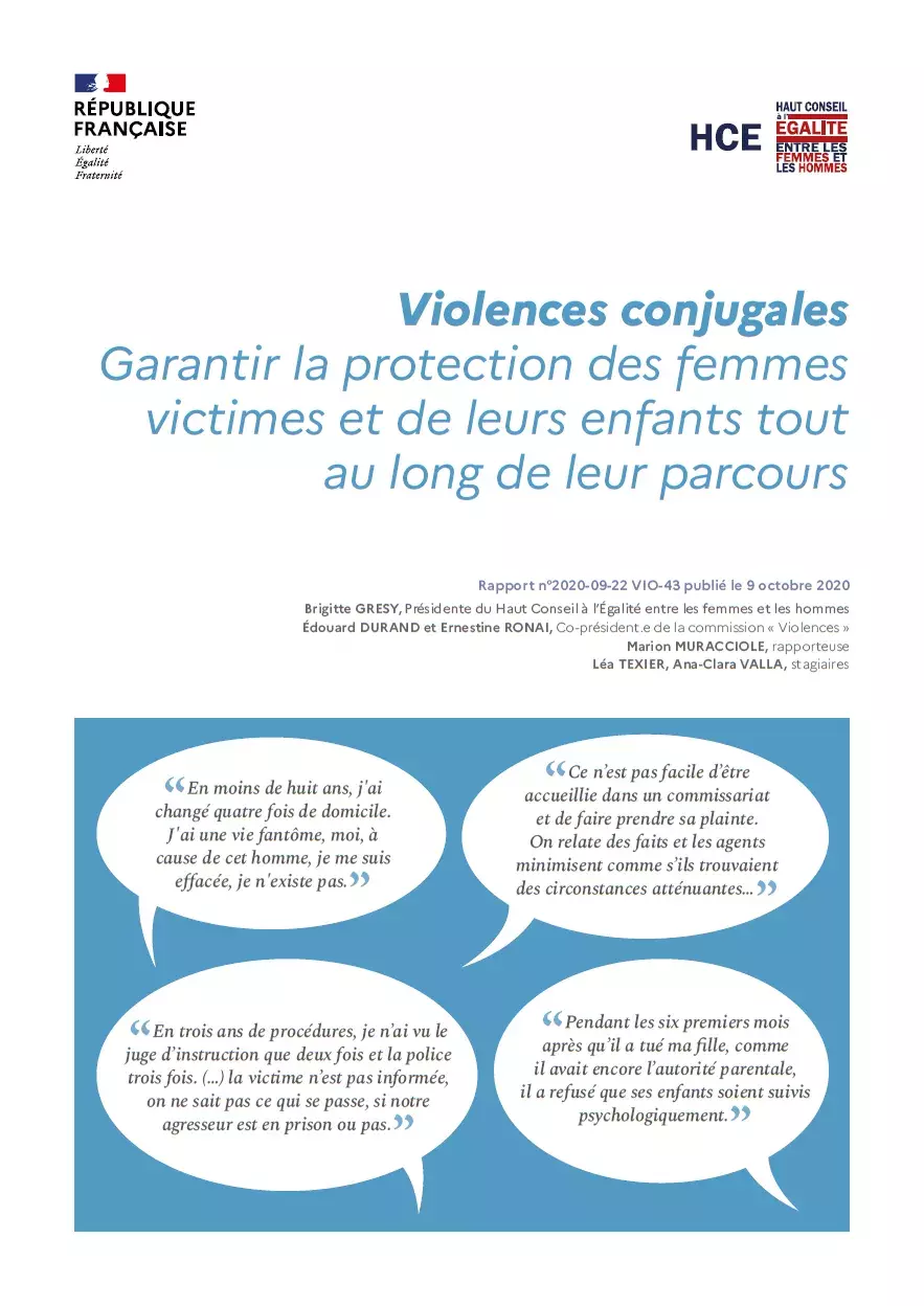- Rapport HCE 2020 Violences conjugales. Garantir la protection des femmes victimes et de leurs enfants tout au long de leur parcours (PDF - 2.45 Mo)