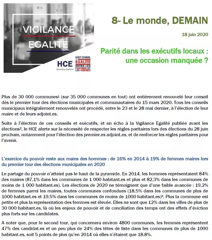Vigilance Égalité n°10 Suite à la Vigilance égalité du 18 juin dernier, intitulée « Parité dans les exécutifs locaux, une…