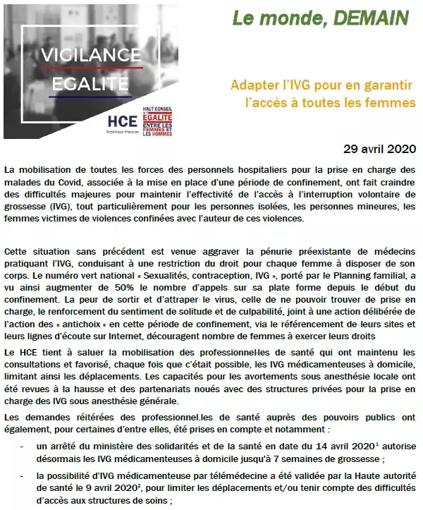 Avis de vigilance - Garantir l’accès à l’IVG à toutes les femmes